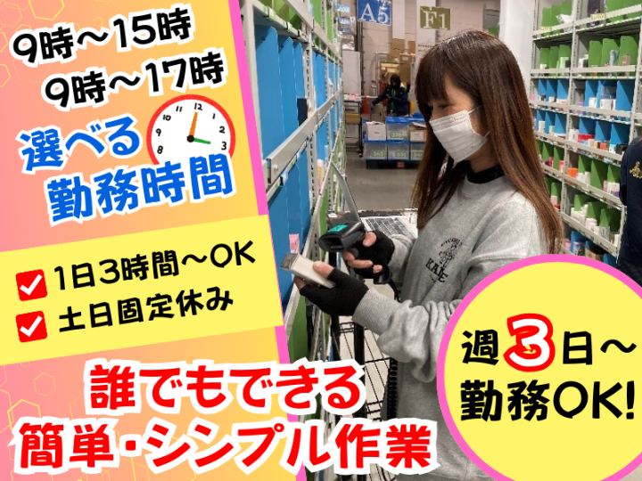 ・勤務時間が選べる◎1日3時間・週3日~勤務可能!