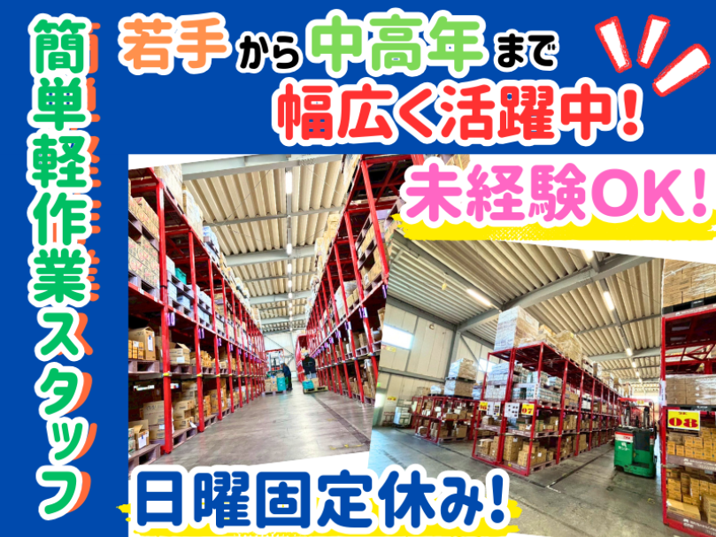 【未経験大歓迎✨日曜固定休み!】簡単・シンプル作業◎20~50代までの男女スタッフ活躍中!車・バイク通勤可能