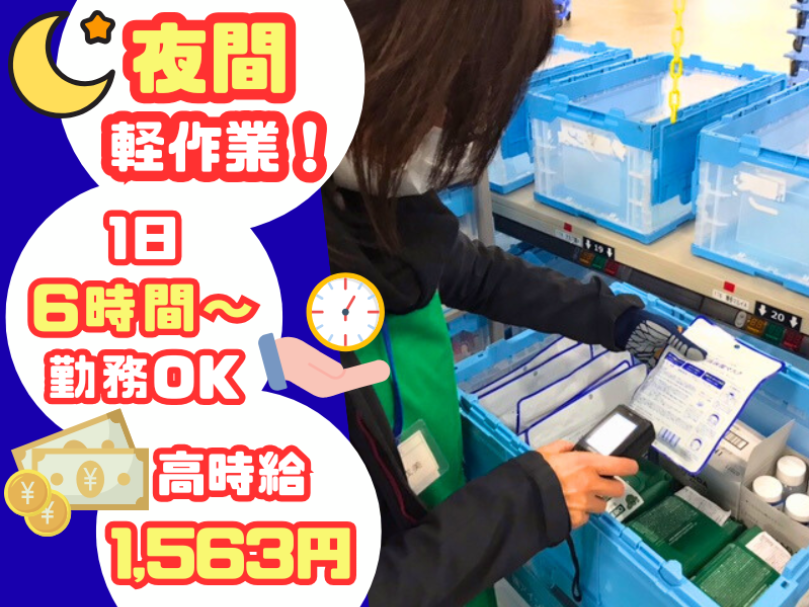 【高時給で効率よく稼げる✨】週3日~/1日6時間~勤務OK◎人気の夜間軽作業!キレイで新しい物流センターでのお仕事