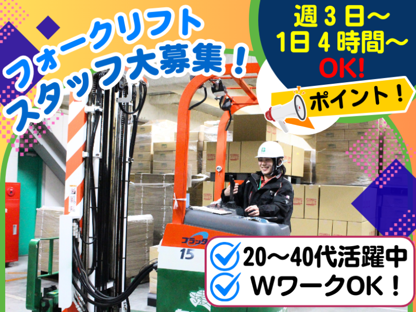 【週3日~/1日4時間~勤務OK✨】キレイな倉庫でのフォーク作業/資格・経験を活かしてお仕事をしたい方大歓迎!